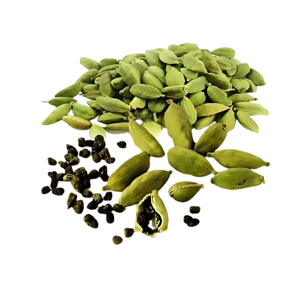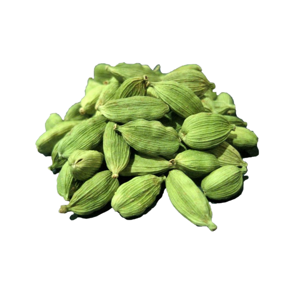You can’t mistake the flavor of green cardamom. It tastes a lot like eucalyptus (and hence like many cough losanges) owing to a compound called cineole. It’s great fried in hot oil at the beginning of cooking an Indian dish. Usually between two and six whole cardamom pods are what you will find in an Indian recipe.